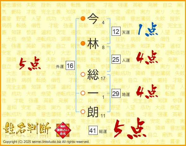 今林総一朗さんの人運は25画の4点!