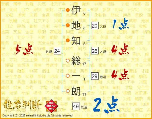 伊地知総一朗さんの人運は25画の4点!