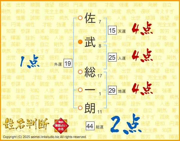 佐(7画)武(8画) 総(17画)一(1画)朗(11画)