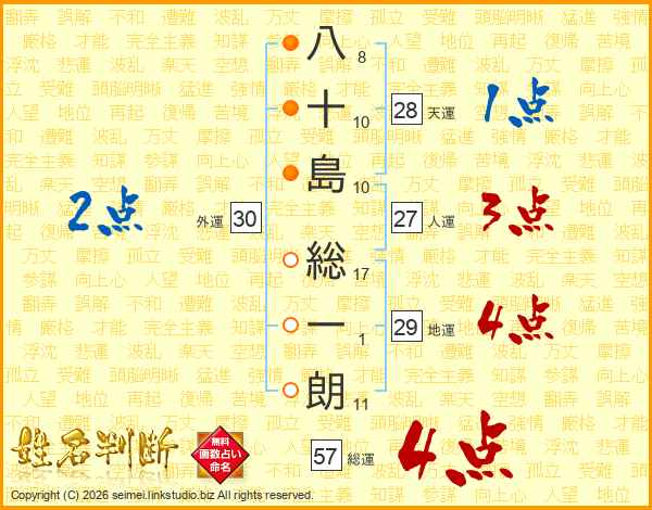八十島総一朗さんの総運は57画の4点!