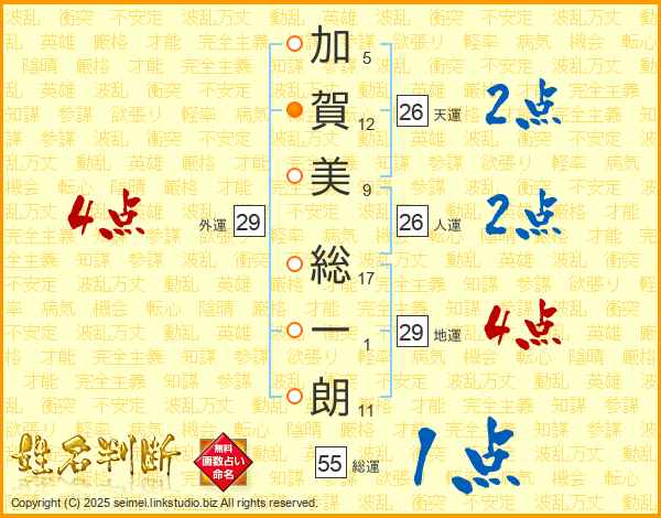 加賀美総一朗さんの総運は55画の1点!