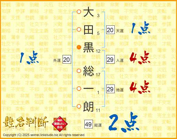 大田黒総一朗さんの人運は29画の4点!