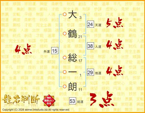 大鶴総一朗さんの総運は53画の3点!