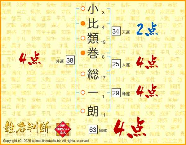 小比類巻総一朗さんの総運は63画の4点!