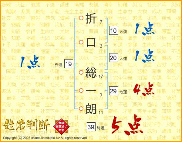 折(7画)口(3画) 総(17画)一(1画)朗(11画)