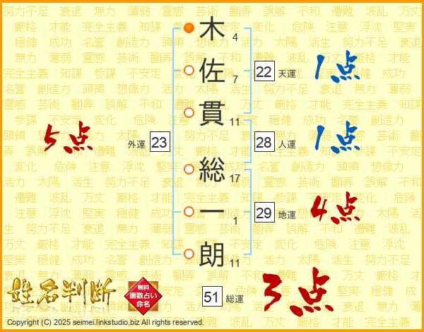 木佐貫総一朗さんの総運は51画の3点!