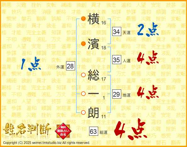 横濱総一朗さんの総運は63画の4点!