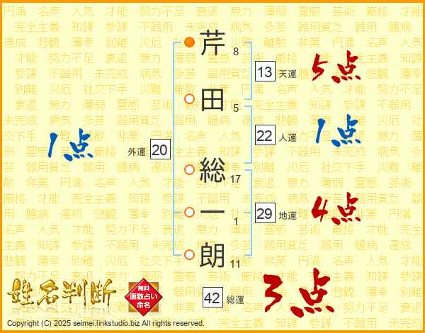 芹田総一朗さんの総運は42画の3点!