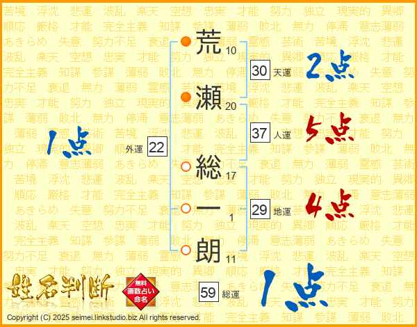 荒瀬総一朗さんの総運は59画の1点!