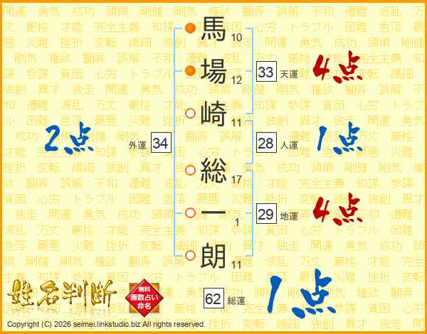 馬場崎総一朗さんの天運は33画の4点!
