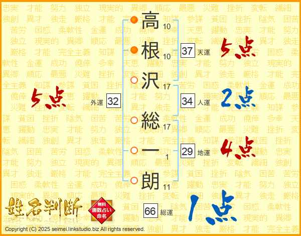 高根沢総一朗さんの総運は66画の1点!