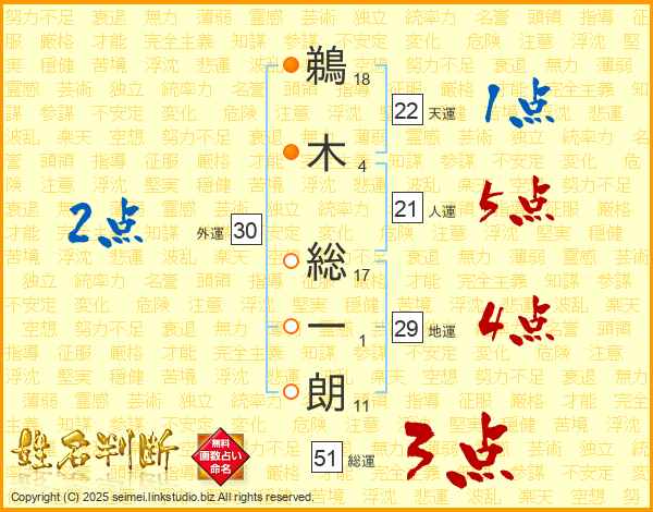 鵜木総一朗さんの総運は51画の3点!