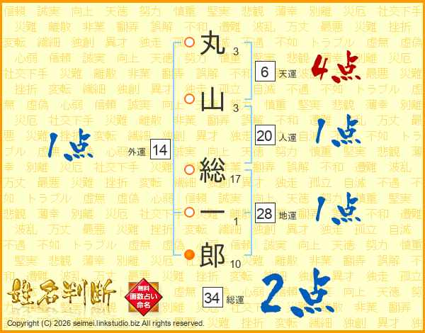 丸山総一郎さんの総運は34画の2点!