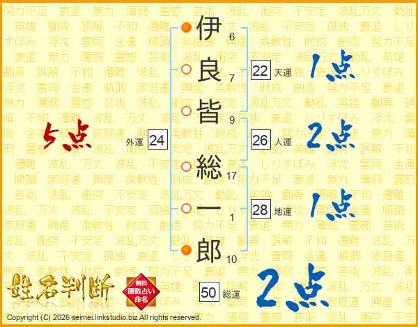 伊良皆総一郎さんの総運は50画の2点!