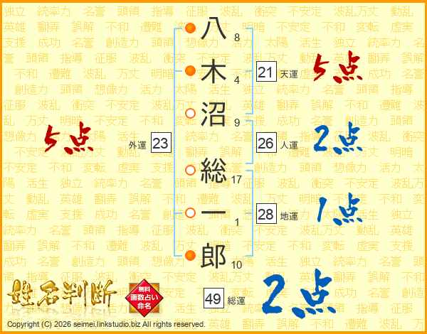 八木沼総一郎さんの人運は26画の2点!