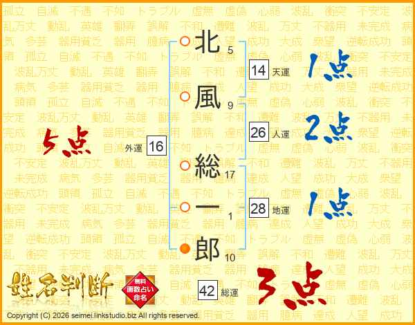 北風総一郎さんの総運は42画の3点!