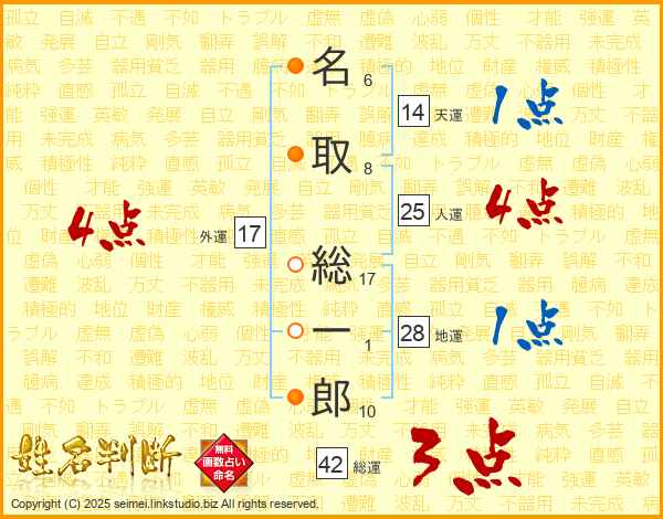 名(6画)取(8画) 総(17画)一(1画)郎(10画)