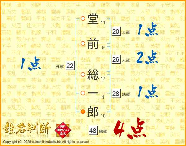 堂前総一郎さんの総運は48画の4点!