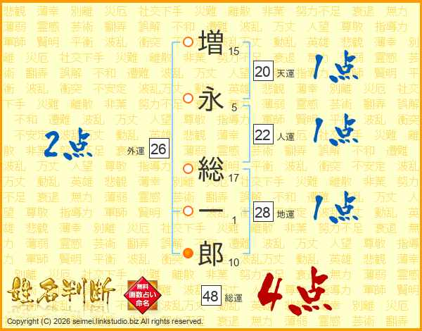 増(15画)永(5画) 総(17画)一(1画)郎(10画)
