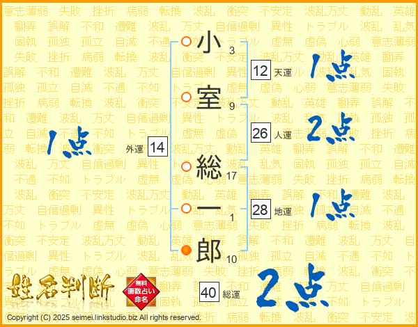 小室総一郎さんの総運は40画の2点!