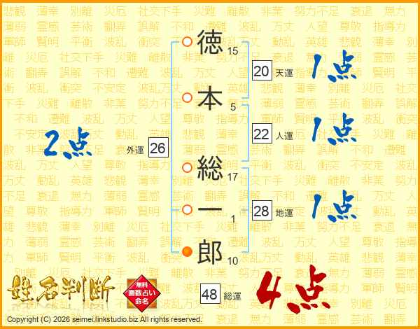 徳本総一郎さんの総運は48画の4点!