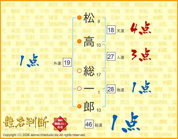 松高総一郎さんの総運は46画の1点!