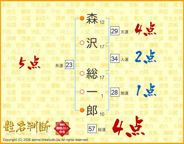 森(12画)沢(17画) 総(17画)一(1画)郎(10画)