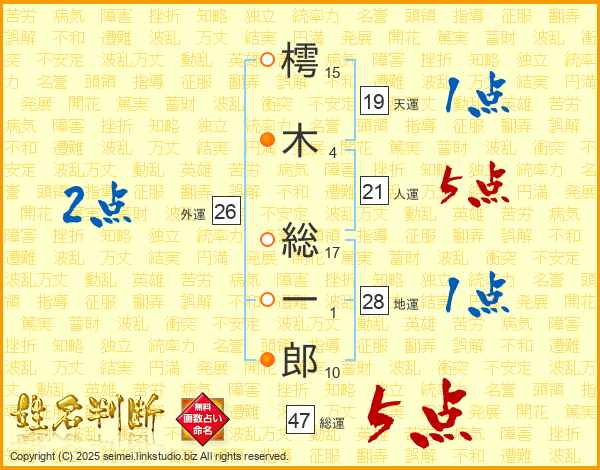 樗木総一郎さんの総運は47画の5点!