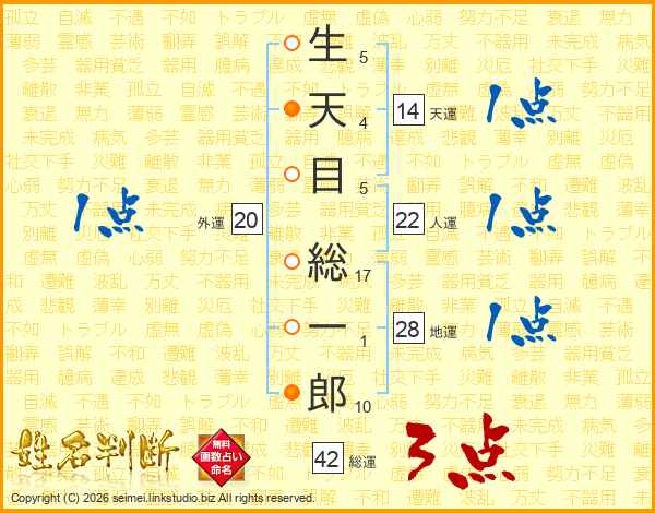 生(5画)天(4画)目(5画) 総(17画)一(1画)郎(10画)
