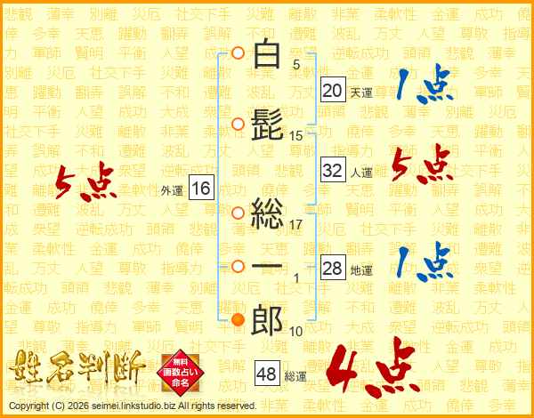 白髭総一郎さんの人運は32画の5点!