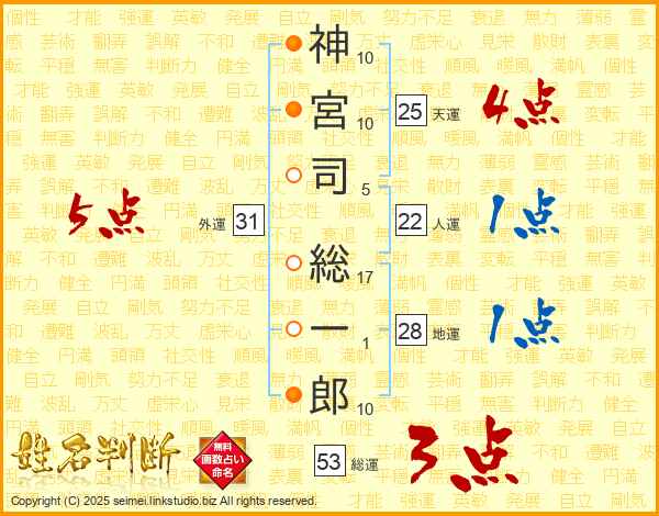 神宮司総一郎さんの総運は53画の3点!