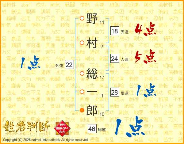 野村総一郎さんの総運は46画の1点!