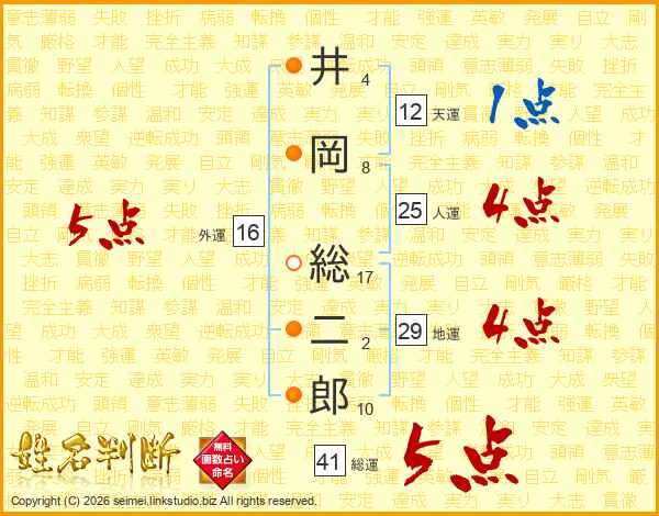 井岡総二郎さんの総運は41画の5点!