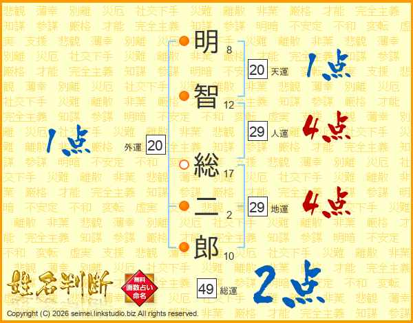 明智総二郎さんの総運は49画の2点!