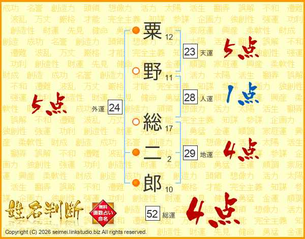 粟(12画)野(11画) 総(17画)二(2画)郎(10画)