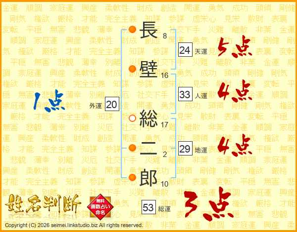 長(8画)壁(16画) 総(17画)二(2画)郎(10画)