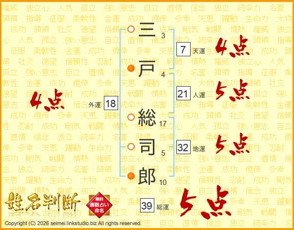 三(3画)戸(4画) 総(17画)司(5画)郎(10画)