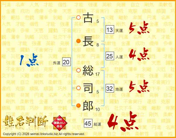 古長総司郎さんの総運は45画の4点!