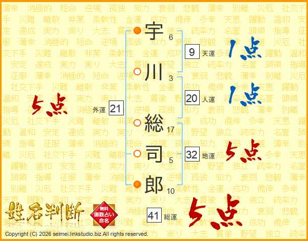 宇川総司郎さんの外運は21画の5点!