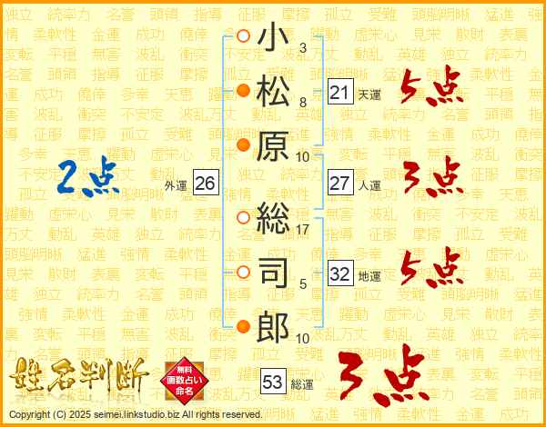 小(3画)松(8画)原(10画) 総(17画)司(5画)郎(10画)