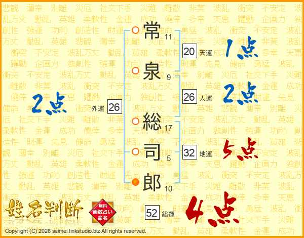 常泉総司郎さんの総運は52画の4点!