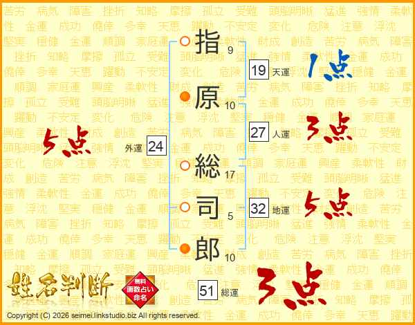 指原総司郎さんの総運は51画の3点!
