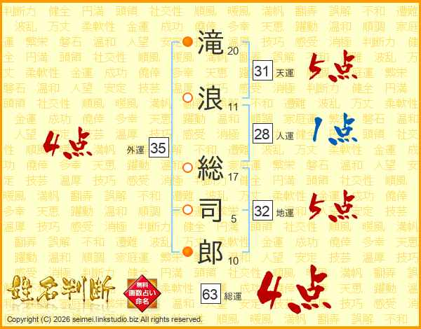 滝浪総司郎さんの総運は63画の4点!