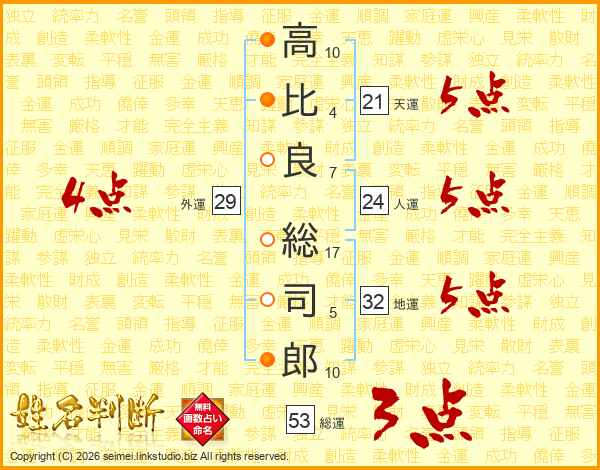 高(10画)比(4画)良(7画) 総(17画)司(5画)郎(10画)