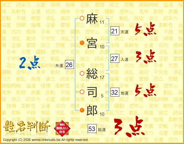 麻宮総司郎さんの外運は26画の2点!