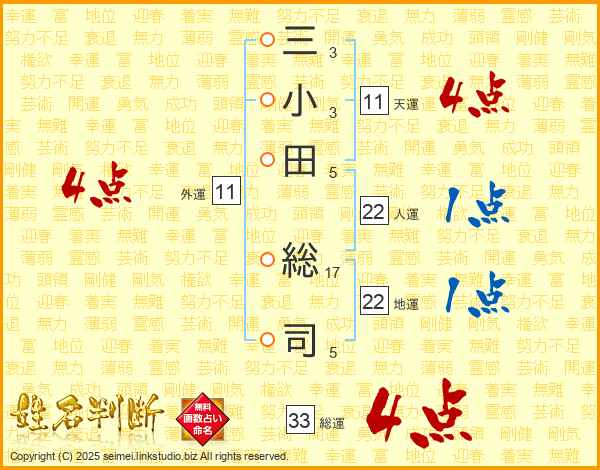 三(3画)小(3画)田(5画) 総(17画)司(5画)