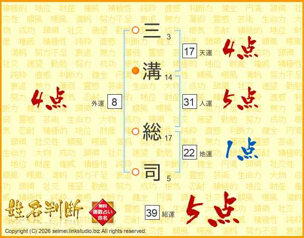 三溝総司さんの総運は39画の5点!