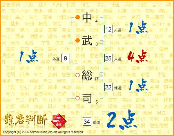 中(4画)武(8画) 総(17画)司(5画)