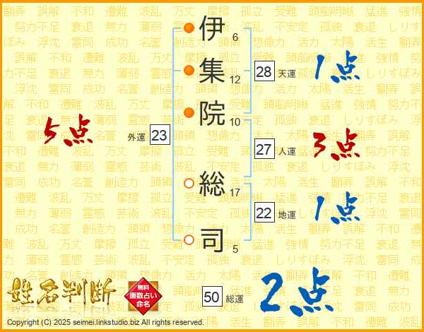 伊集院総司さんの総運は50画の2点!