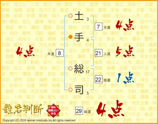 土手総司さんの総運は29画の4点!